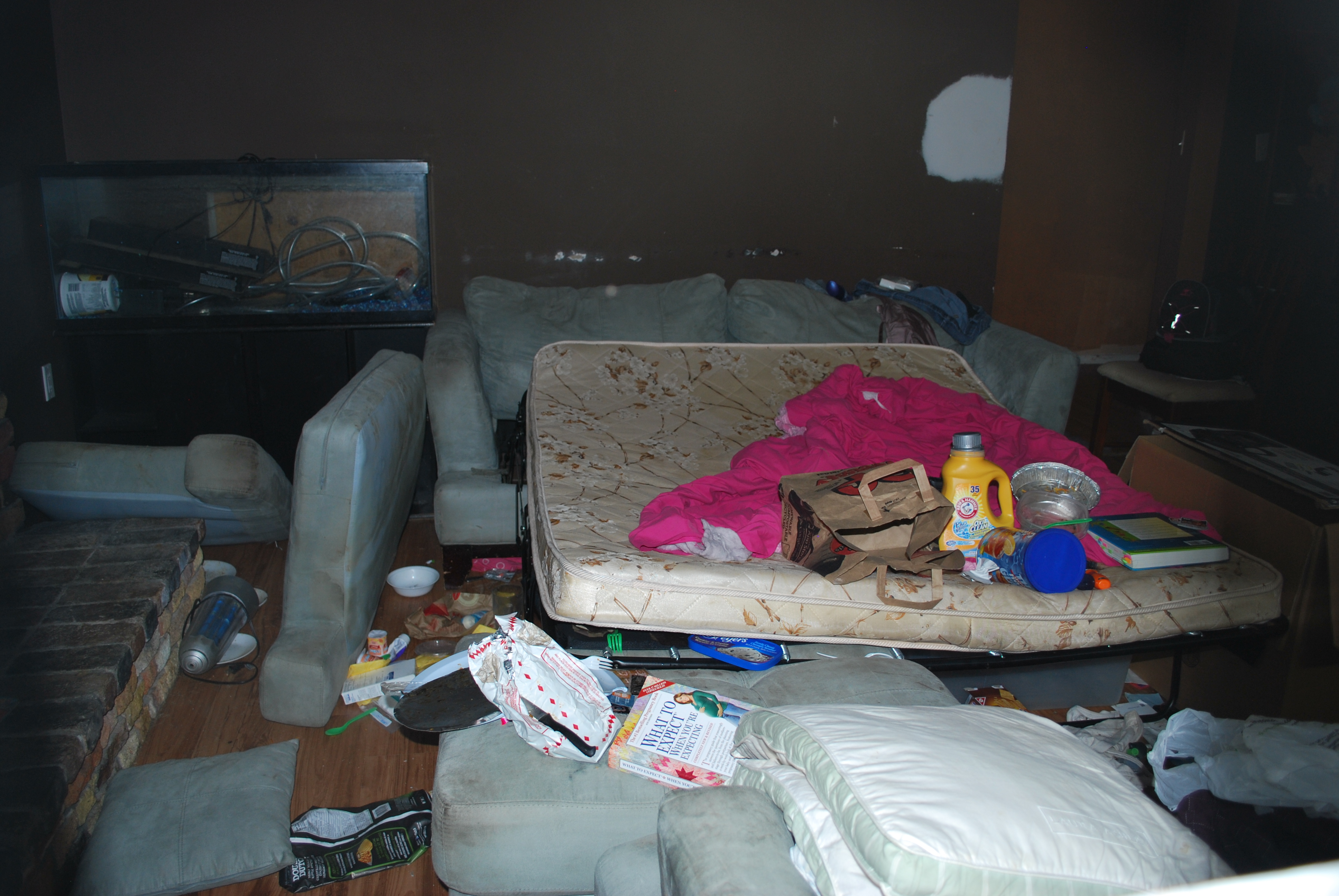 Well, the place was never cleaned up and these tenants are finally leaving as well. The whole house pongs of pet urine and is completely falling apart. A few months back the SPCA came and removed a bunch of emaciated dogs and neglected cats. Now it’s my turn.