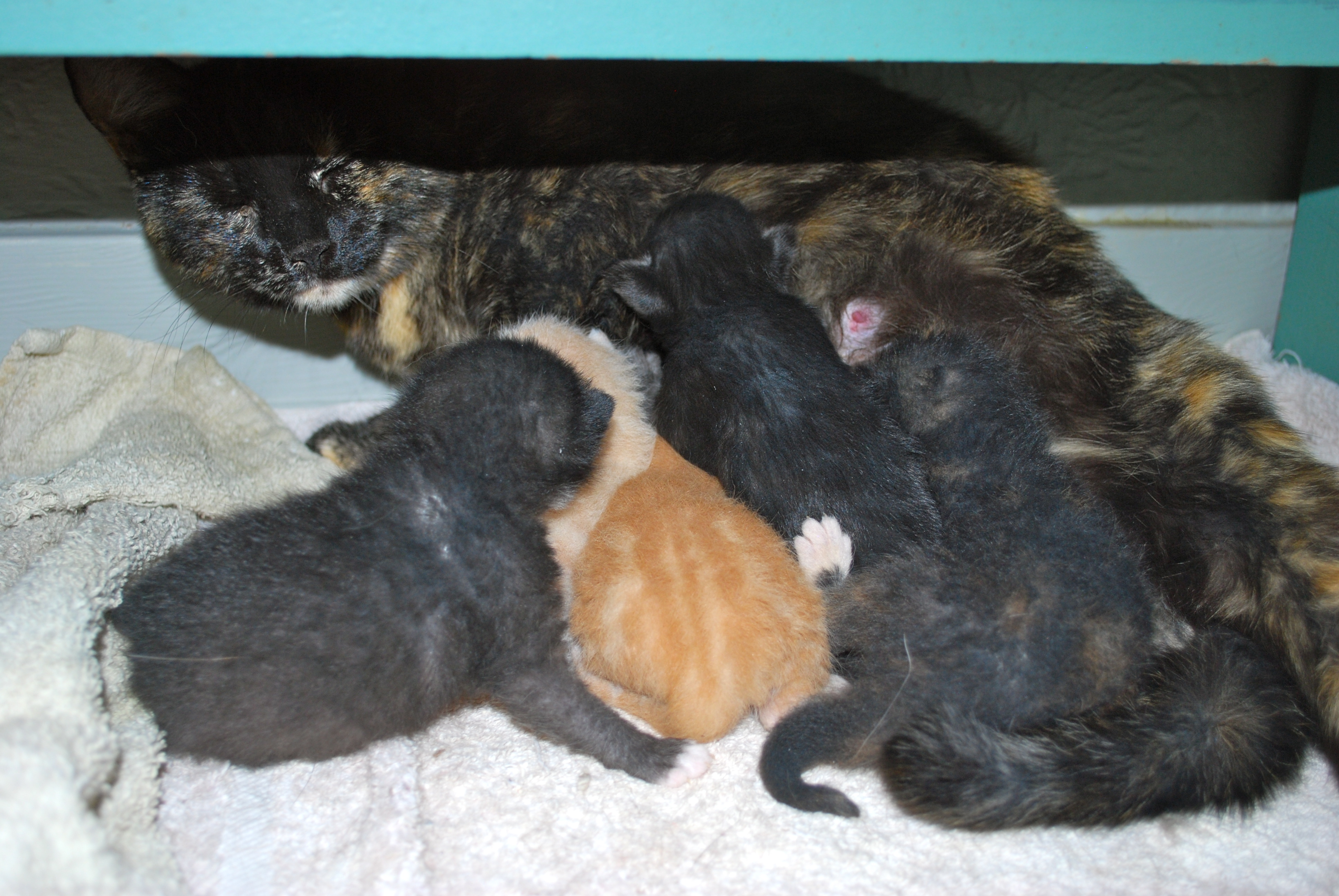 Thanks for your comment! I had all the kittens fixed and found them loving new homes, except for the little orange screamer and the fluffy one who are now permanent residents. The mom cat was also fixed and found a great new home with people who adore her. The woman who brought them here was evicted shortly after, thank goodness!