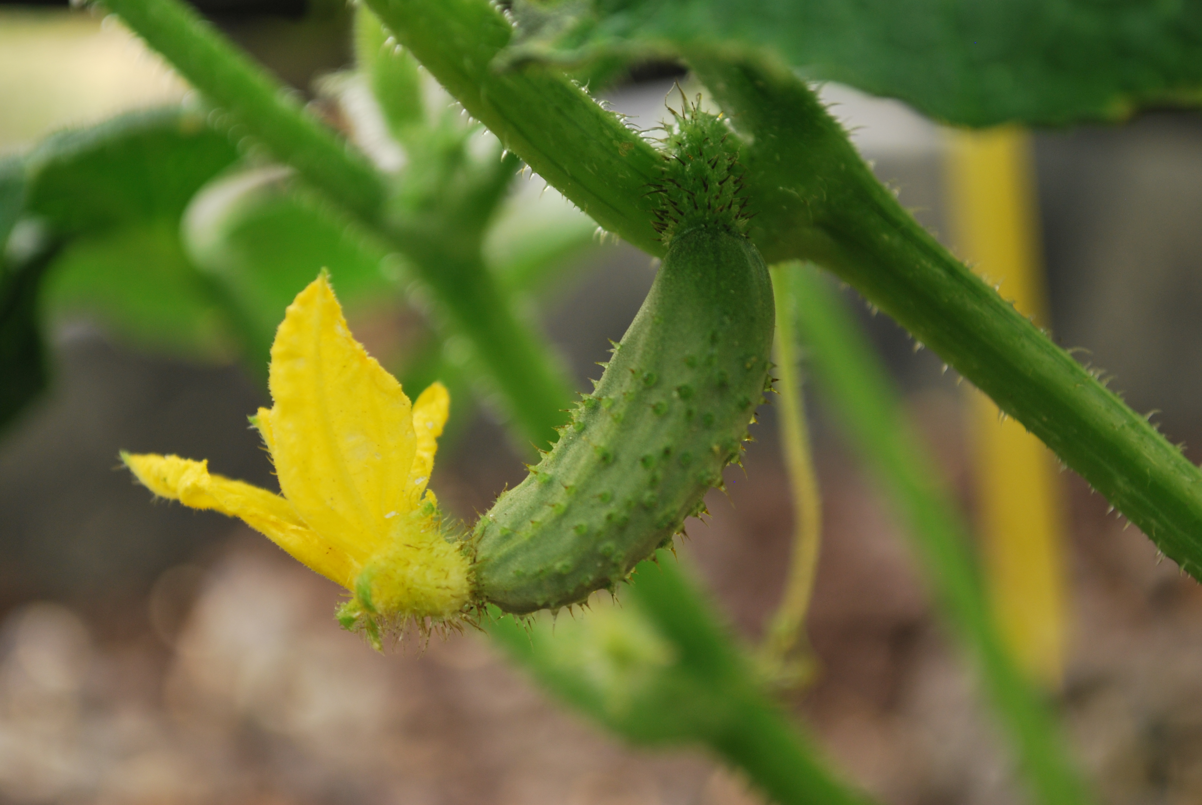 My other Cornichon pickling cukes are growing fast. I was noticing today that some yellowing was appearing on the edges of the leaves, so they all got epsom salt water too. We’ll see what transpires. At least all the little baby cukes are looking good!