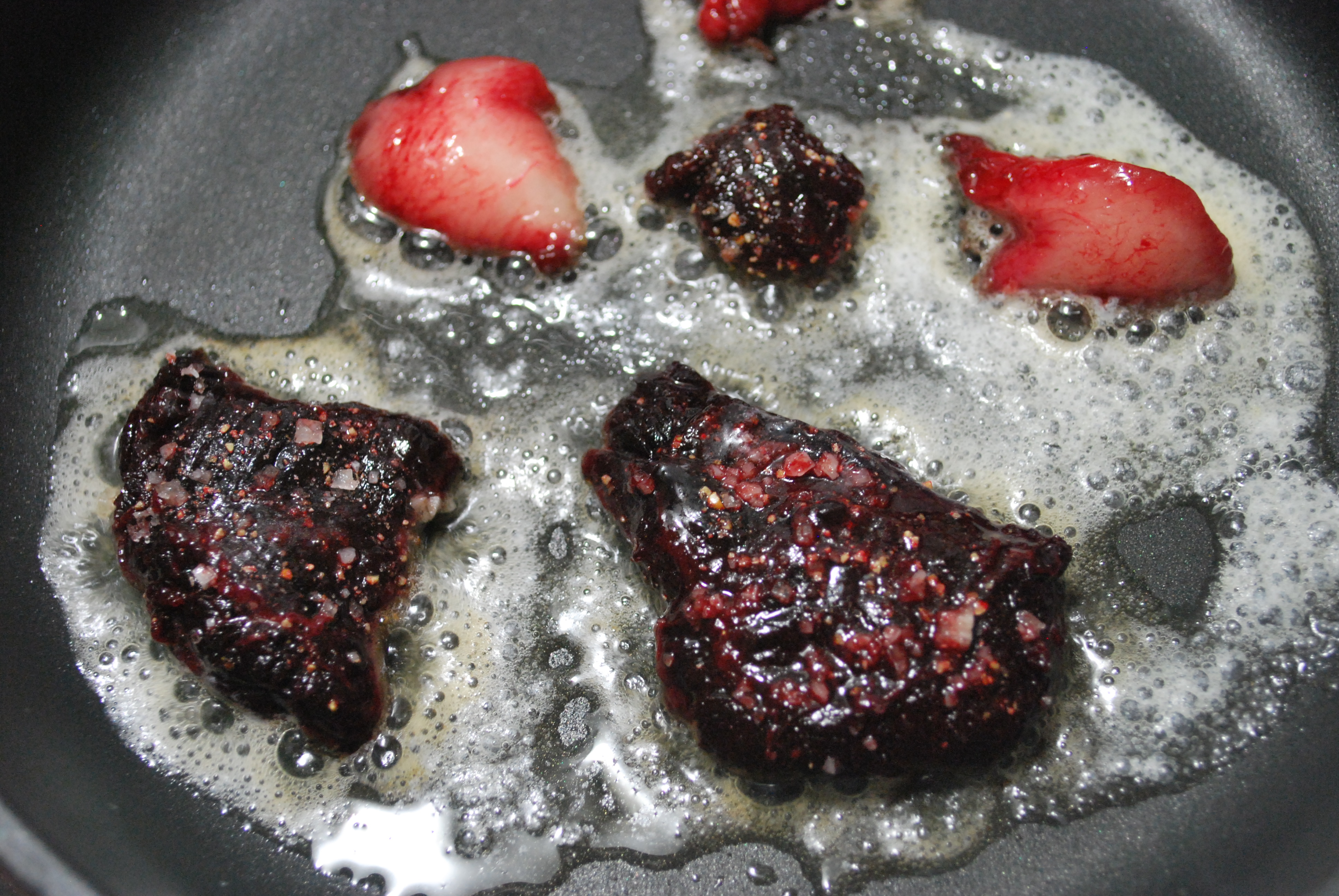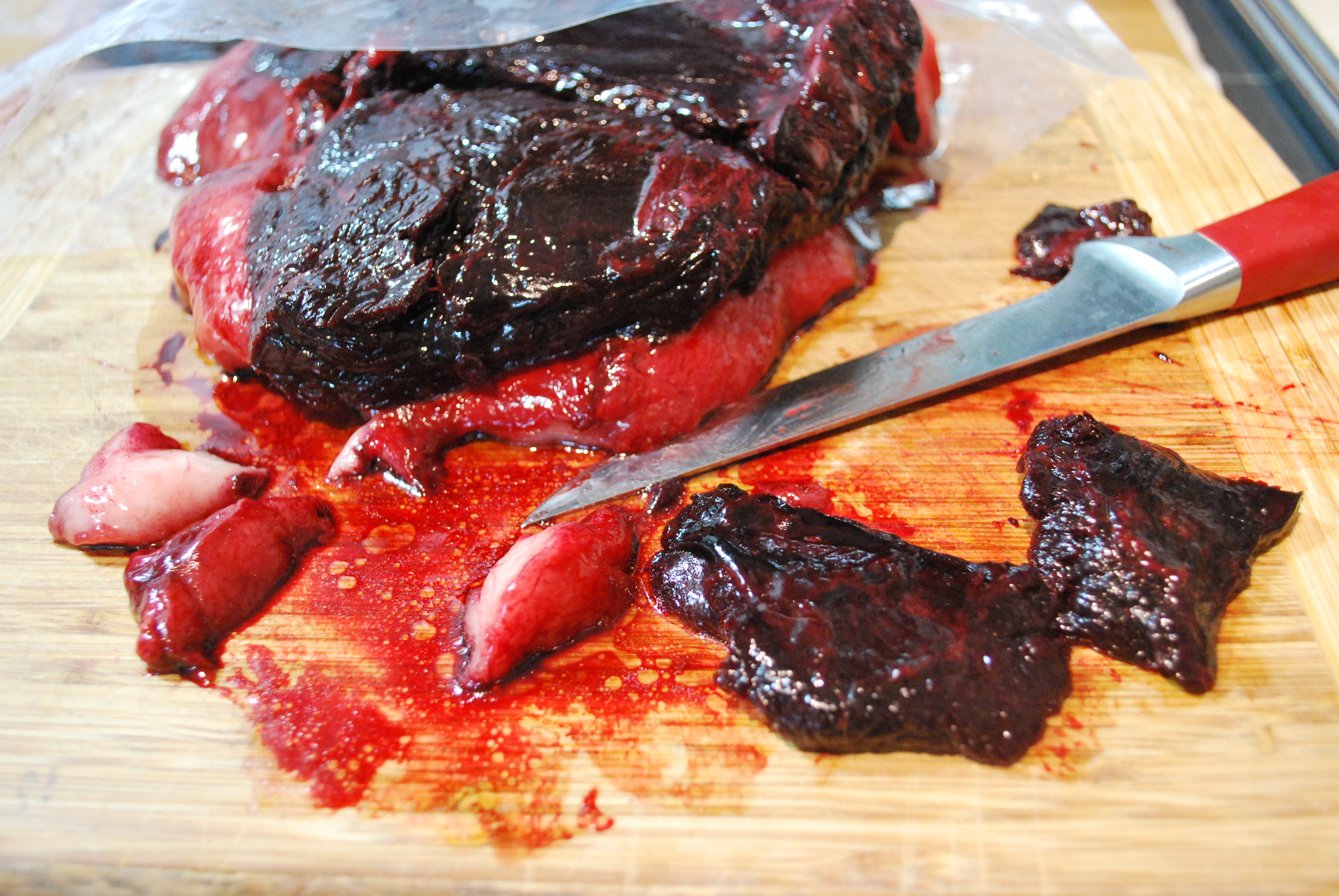 DSC_0014My lovely boyfriend who has been working in Nunavut for the past four months recently came home for a much needed visit. It was a great opportunity to try the seal meat that he sent me that has been patiently waiting in my freezer… Although seal meat never quite freezes solid as it is permeated with a thin oil throughout.