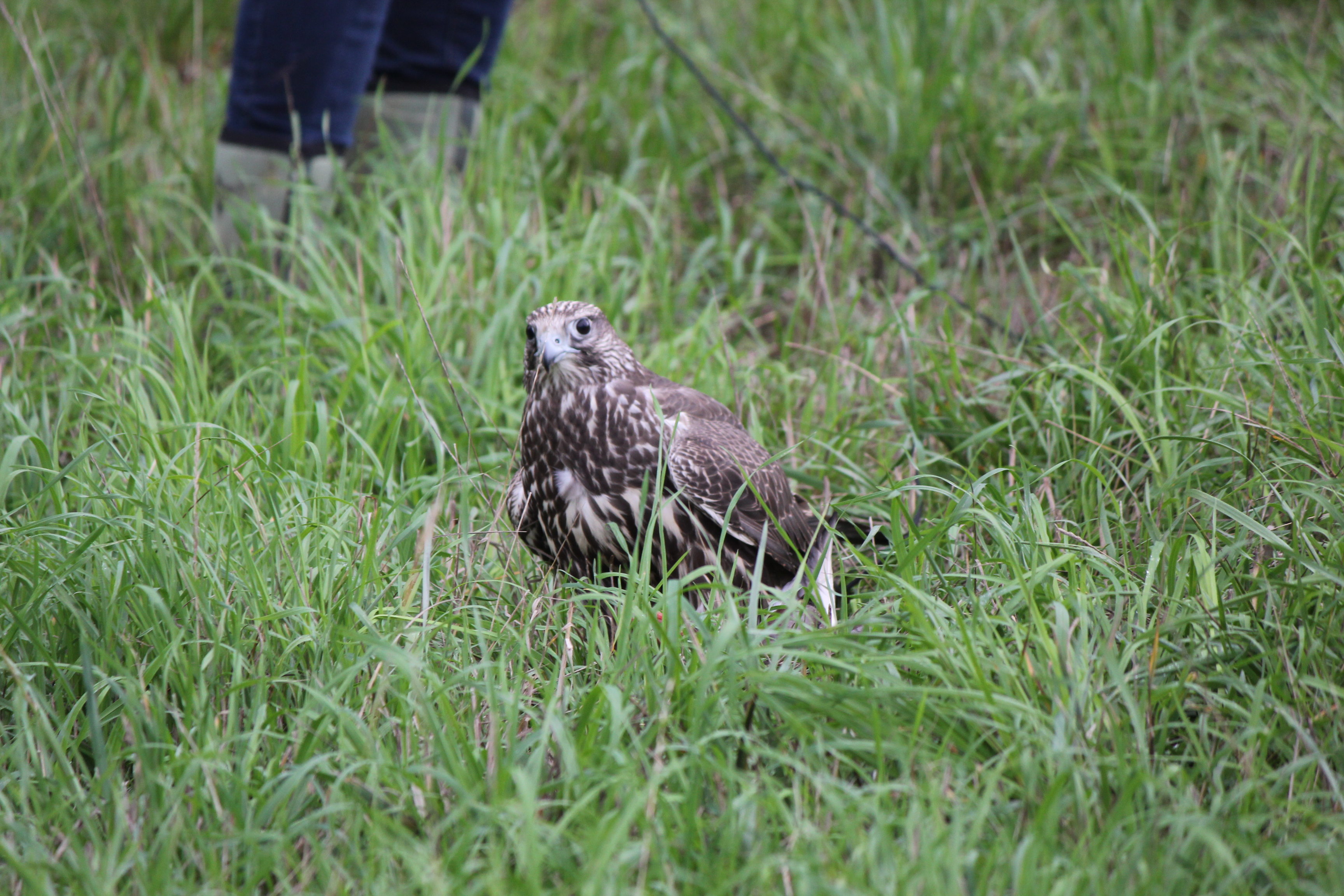 Some of the training we do is simply manning birds, which means to carry them around on the glove. This is just good practice for the birds as they get to observe their surroundings and form positive experiences. Of course some of our birds are very well trained already like Bell the Saker Falcon (above photo) and Harry the Swainson’s Hawk (below photo).